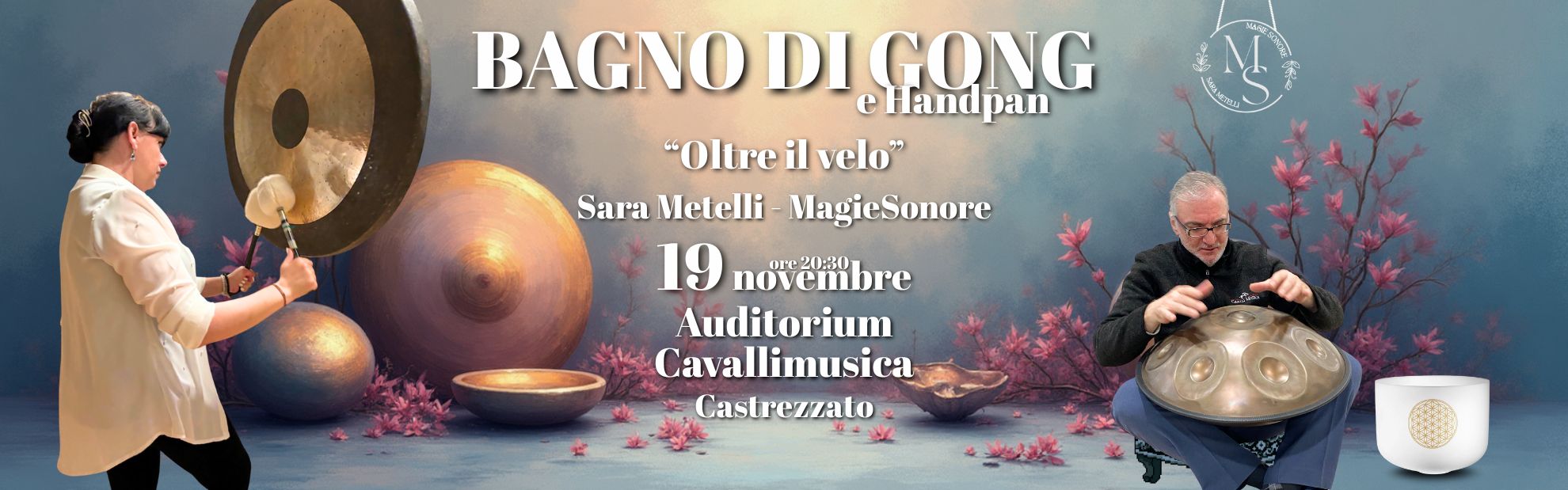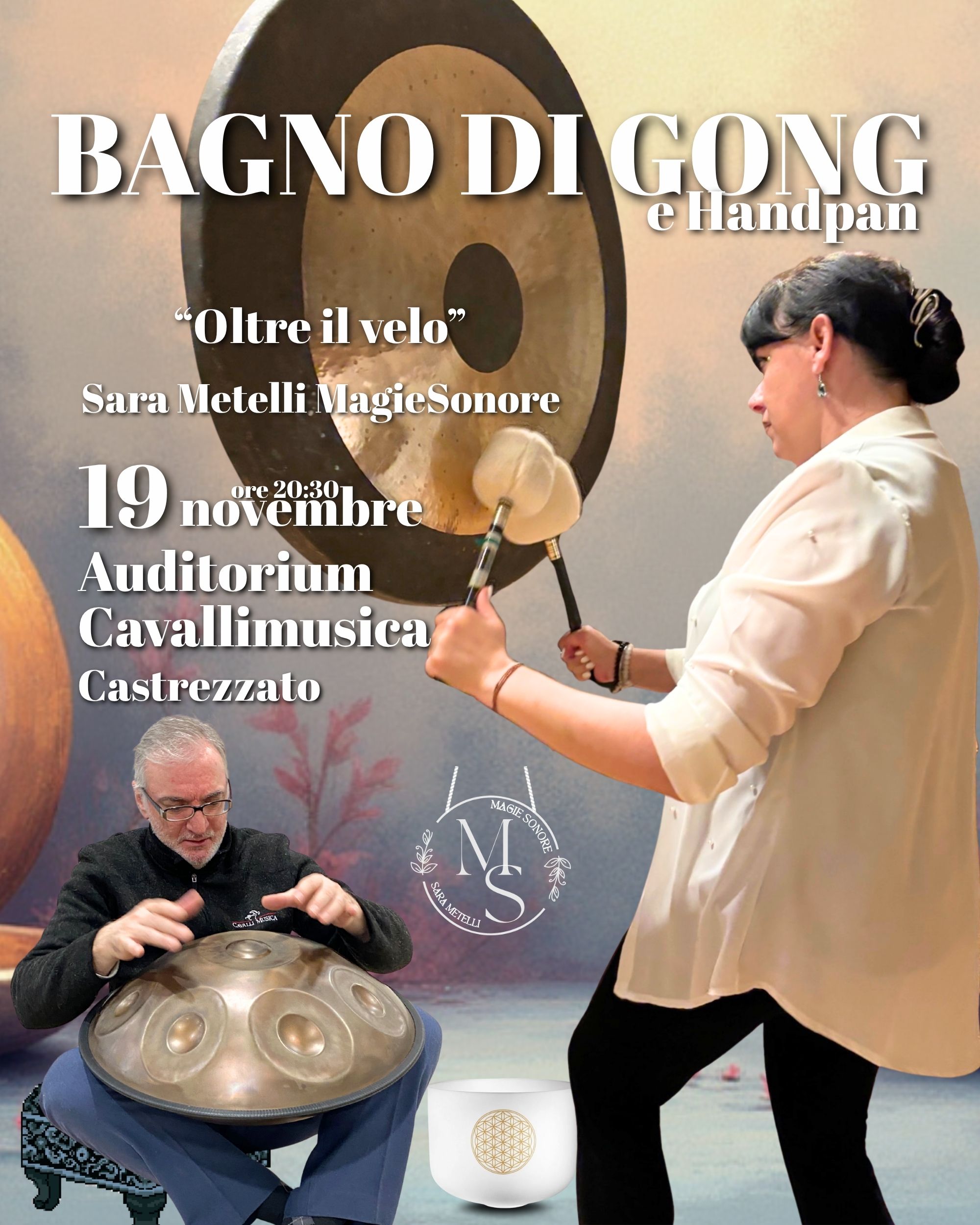 “Oltre il Velo” è un’esperienza di profondo ascolto e trasformazione: le vibrazioni potenti dei gong si fondono con le melodie eteree dell’handpan, dando vita a un paesaggio sonoro che culla, scioglie e rigenera.