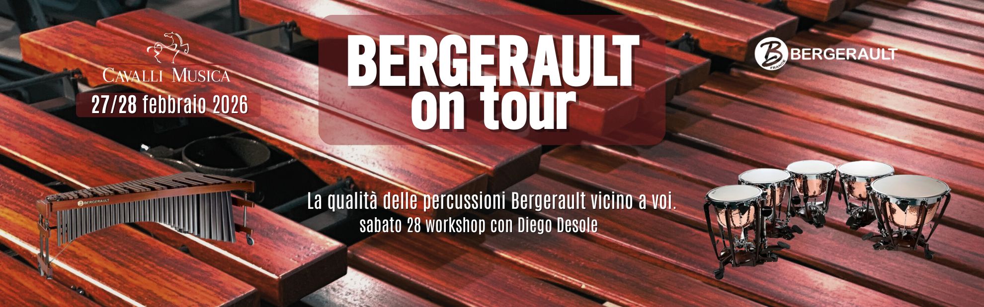 Due giornate pensate per percussionisti, studenti, docenti e appassionati, con la possibilità di scoprire e provare dal vivo le tastiere e le percussioni Bergerault.