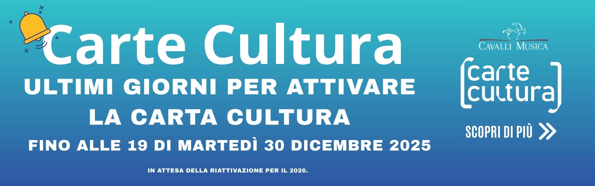 Da Cavallimusica la Carta Cultura può essere attivata fino alle ore 19 di martedì 30 dicembre 2025.
