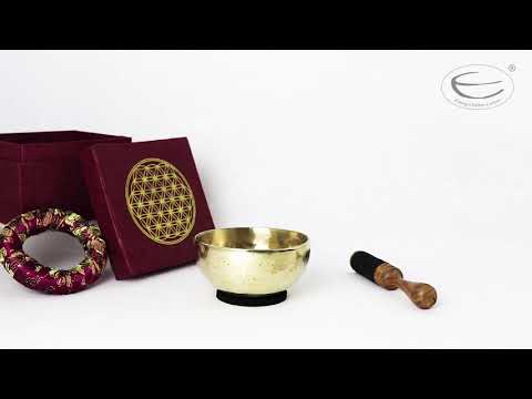 La campana tibetana è stata forgiata a mano con metodi tradizionali e poi lucidata a specchio. La campana tibetana è stata rifinita incidendo il "Fiore della vita" all'interno. Il "Fiore della vita" si trova anche sul coperchio della scatola. All'interno della confezione regalo c'è un testo sulle campane tibetane. Il simbolo del "Fiore della Vita" è un potente simbolo energetico che simboleggia la matrice di base della creazione attraverso i 19 cerchi intrecciati. Dovrebbe sostenere le persone nella loro vita quotidiana e avere un effetto positivo su di loro.