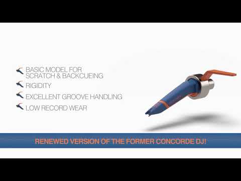 La Concorde DJ è considerata un tuttofare, che vanta un'accurata riproduzione del suono e un'eccellente maneggevolezza del solco. La DJ è perfetta per qualsiasi stile musicale. Ha una puntuina sferica e un cantilever estremamente bilanciato che offre una straordinaria rigidità . Non solo la cartuccia ha una capacità di tracciamento più che sufficiente, ma fornisce ai DJ la rigidità più necessaria e un'usura dei dischi molto bassa. Nel complesso: tracking migliorato, oltre ad un'accurata riproduzione del suono e un'eccellente gestione del groove.