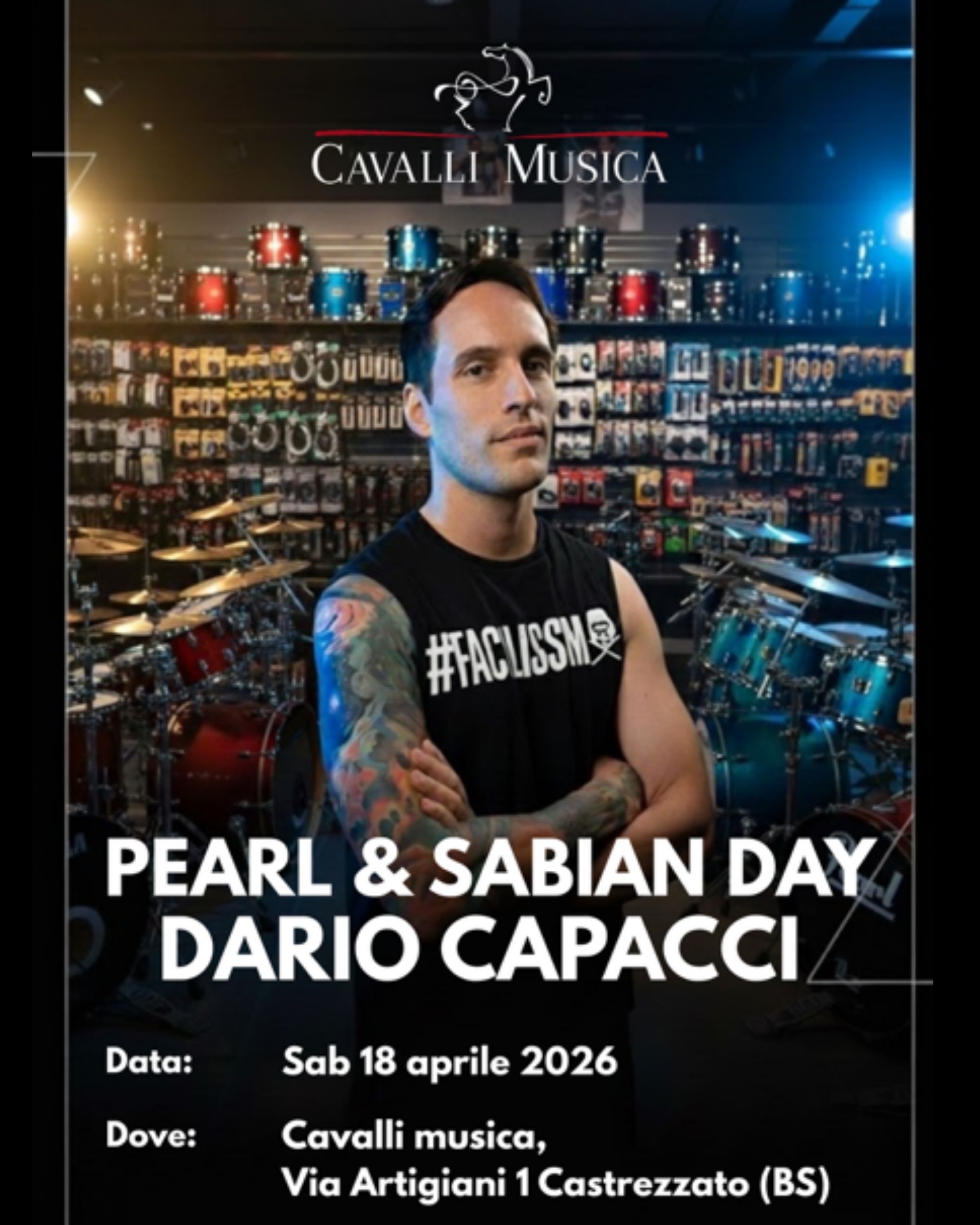 Un’occasione imperdibile per incontrare altri appassionati e scoprire i migliori piatti Sabian e le batterie Pearl insieme a un ospite d’eccezione: Dario Capacci, il batterista metal e YouTuber del momento!