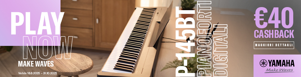 Yamaha P-145BT è un pianoforte digitale da 88 tasti in finitura nera, che unisce la nuova tastiera GHC con un tocco realistico e il sound autentico del pianoforte a coda Yamaha CFIIIS. Con la funzione Bluetooth integrata, offre un'esperienza musicale moderna e portatile, perfetta per lo studio e per l'intrattenimento.